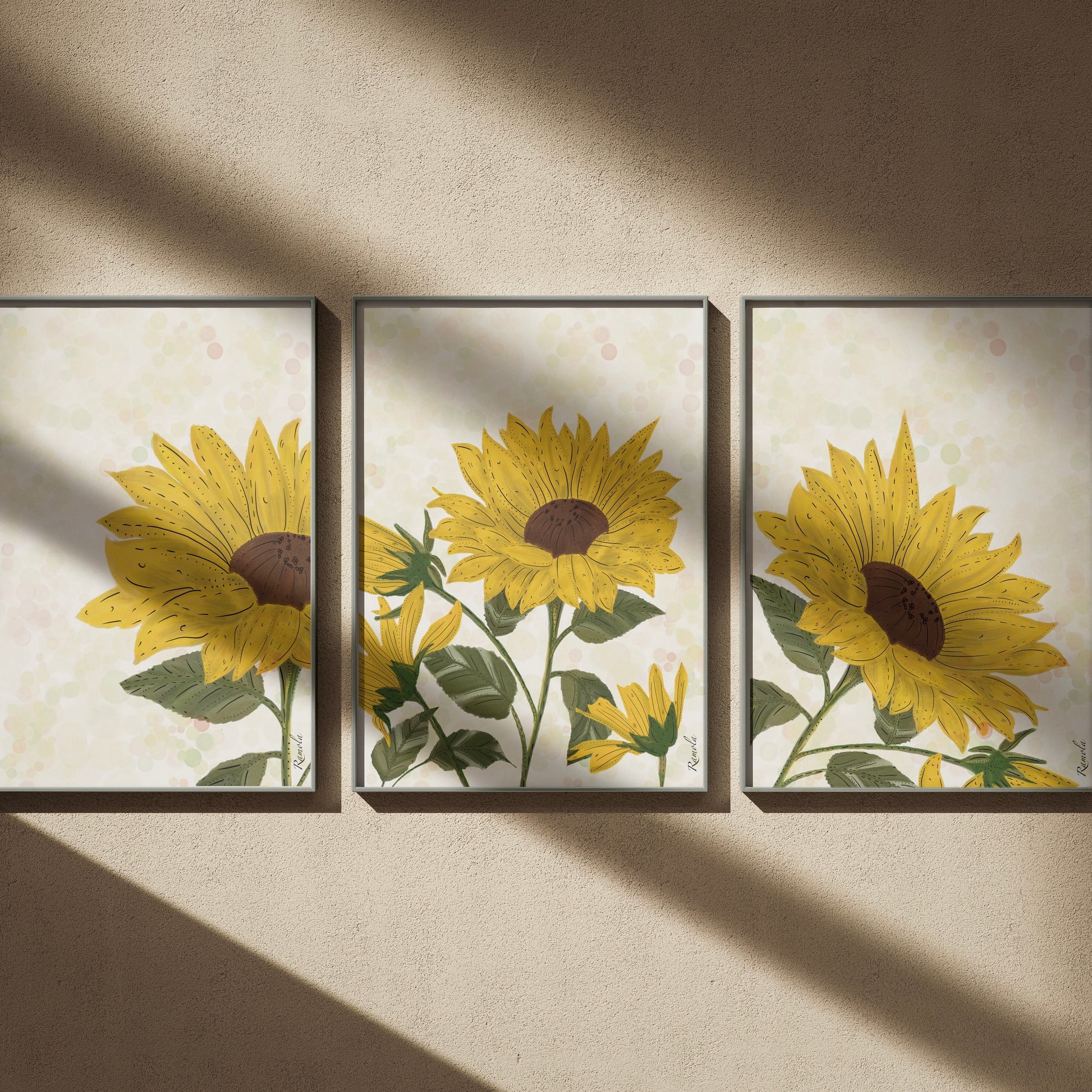 Sunflowers. Set of 3 art prints on 100% recycled paper